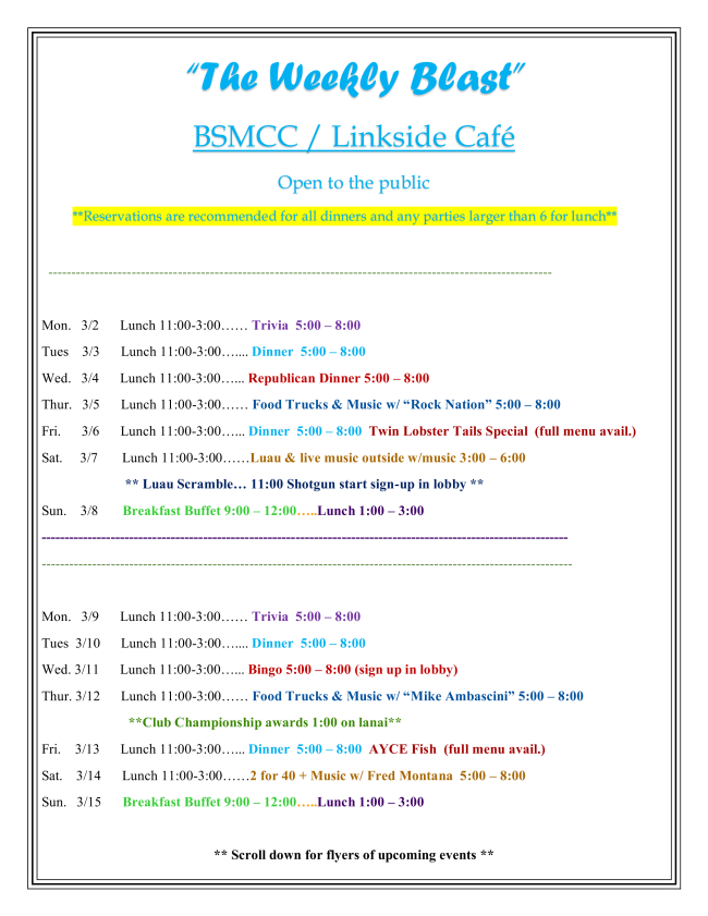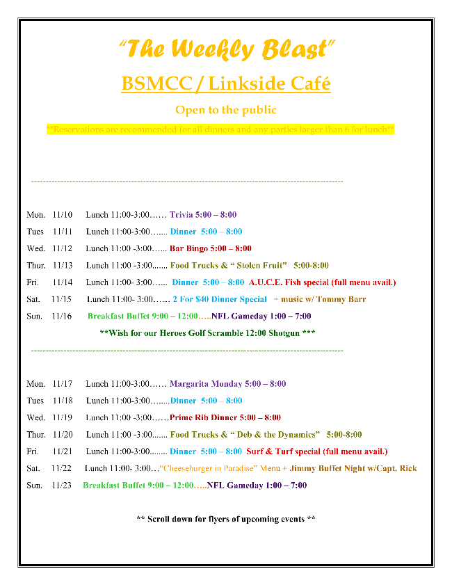 HOURS ARE SUBJECT TO CHANGE. ANY QUESTIONS PLEASE CALL AHEAD.
